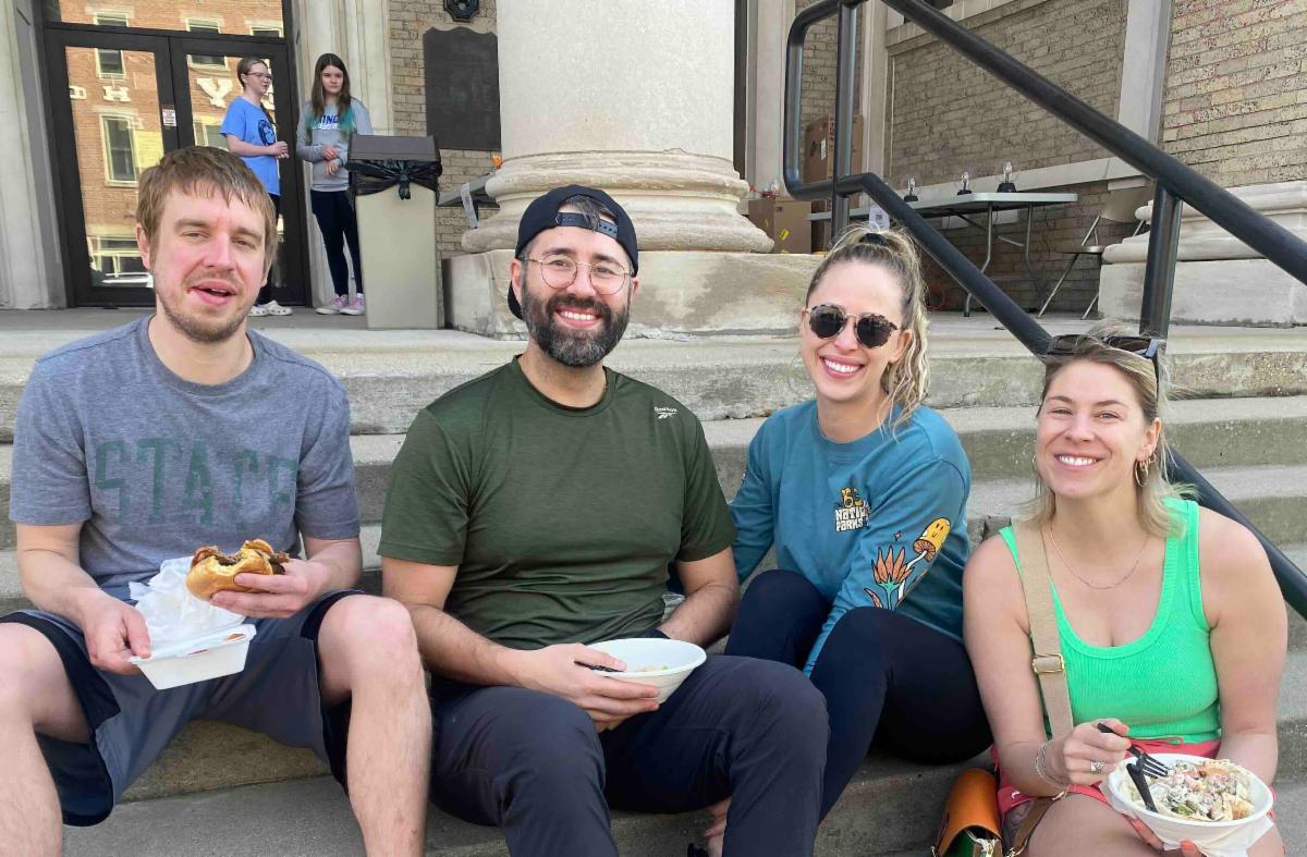 Eating lunch on the courthouse steps while visiting from Detroit, Michigan. | |