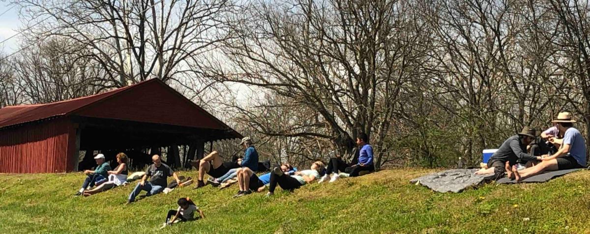 Metamora along the canal near the Aqueduct was a popular spot for eclipse viewing. | |