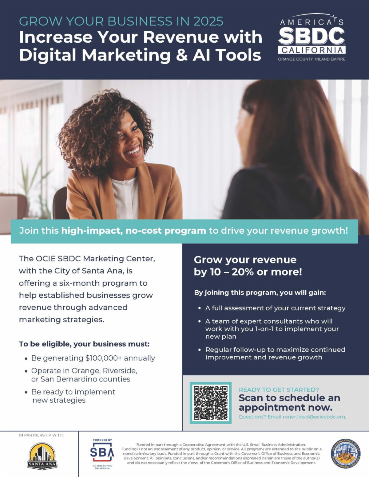 Join a free 6-month digital marketing & AI program from OCIE SBDC + City of Santa Ana!