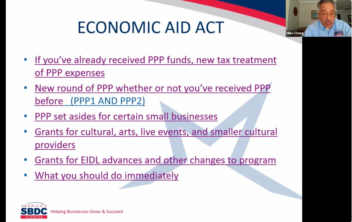 On January 21st the Greater Gainesville Chamber partnered with Mike Chung of the SBDC to host a webinar to inform members about the 2021 changes to the Payroll Protection Program. You can watch the webinar here.