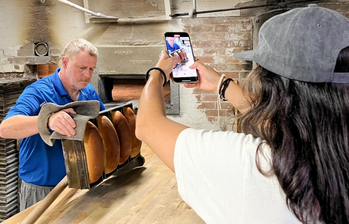 Briana-Lynn Brieiro, Social Video Reporter from blogTO, filmed at three Leeds Grenville locations, including Grahame’s Bakery in Kemptville (top photo at left), Yellow Canoe Café in Merrickville (bottom photo at left) and Scheuermann Vineyard & Winery in Westport.