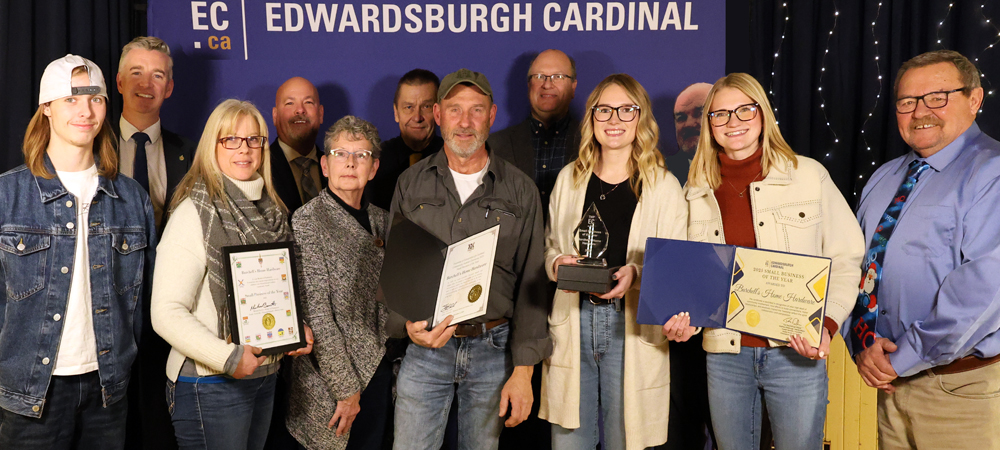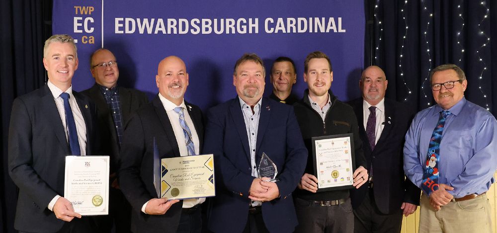 | | Edwardsburgh Cardinal Spotlights Successes | | The Large Business of the Year Award was presented by MP Michael Barrett, Mayor Deschamps and Township Council Members to CREWS Rail, received by Clayton Jones, President, and Jesse Jones, Chief Financial Officer. | | |