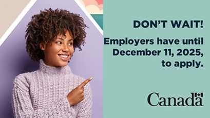 Employers from not-for-profit organizations, the public sector, as well as private sector organizations with 50 or fewer full-time employees can apply. Not-for-profit employers can receive funding for up to 100% of the provincial or territorial minimum wage and public and private sector employers are eligible to receive funding for up to 50%.