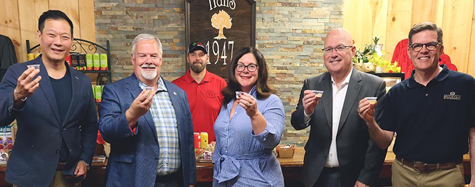 Local officials welcomed the Minister of Tourism, Culture and Gaming, the Honourable Stan Cho to the 1000 Islands Rideau Canal Waterways tourism region on July 4th. The tour began at Windmill Brewery and King’s Lock Craft Distillery followed by Hall’s Apple Market & Cidery.