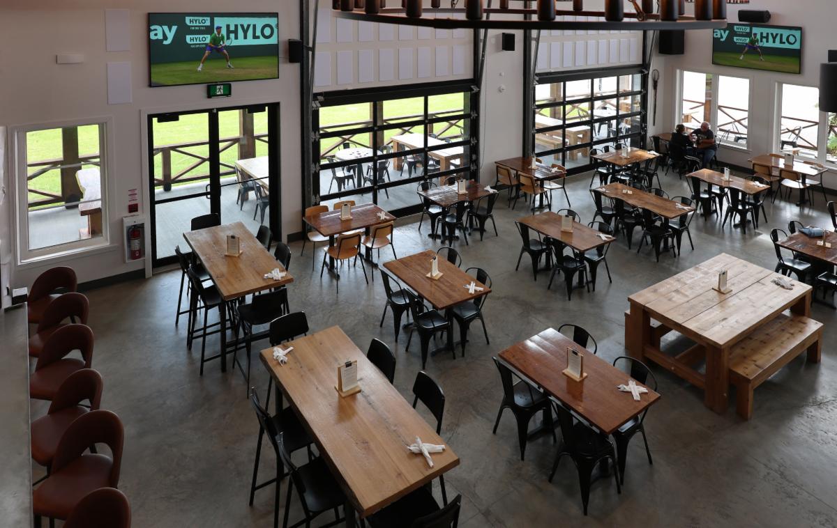 Photos: top main, Co-owner Jocelyn Major serves up the taproom's finest. Above, the spacious patio; the 'Silo', perfect for meetings; Jocelyn takes pride in greeting guests; a view from above.