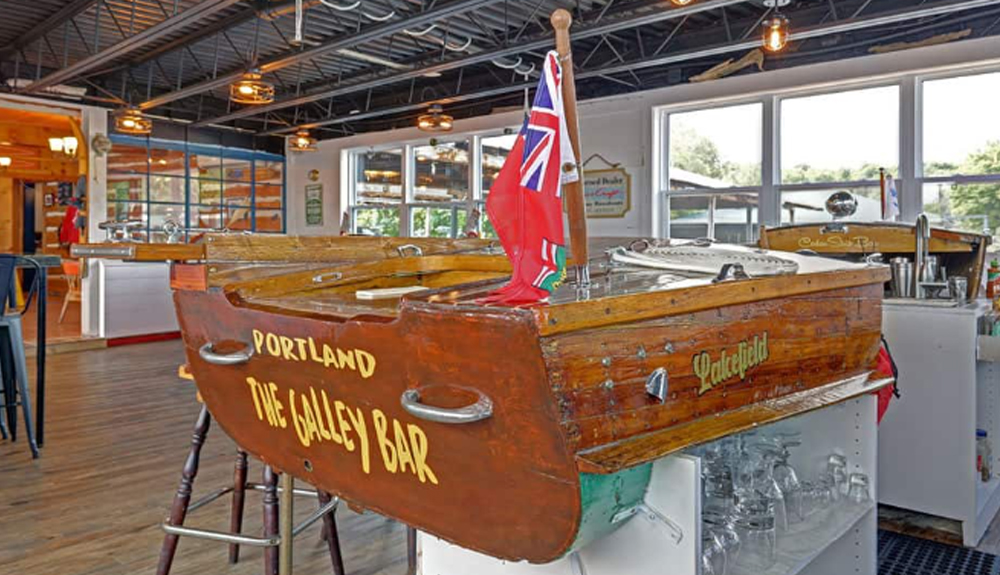 | | Photo, left-right: Edwardsburgh Cardinal Deputy Mayor Stephen Dillabough; United Counties of Leeds and Grenville Warden Corinna Smith-Gatcke; Edwardsburgh Cardinal Mayor Tory Deschamps; King's Lock Distillery Owner Laura Bradley; Minister of Tourism, Culture and Gaming, The Honourable Stan Cho; Leeds-Grenville, Thousand Islands and Rideau Lakes MPP Steve Clark; RTO 9 Executive Director Bonnie Ruddock; Leeds Grenville Economic Development Manager Ann Weir; Maison Maitland Owner Cynthia Peters; Windmill Brewery Owner Sean Lucey. | Minister Cho, Elizabethtown-Kitley Mayor Brant Burrow, Hall's Apple Market Owner and Manager of Operations Matthew Shapton, Warden Smith-Gatcke, MPP S Clark and Brockville Mayor Matt Wren sample cider at Hall's Cidery. | | MPP Clark introduces Minister Cho to Sean Lucey, Owner of Windmill Brewery. | King's Lock Craft Distillery owner Rob Heuvel (far right) serves samples to Minister Cho, Deputy Mayor Dillabough, MPP Clark, Mayor Deschamps and Warden Smith-Gatcke. | | Len's Cove Galley Bar Floats New Look | Since 1958, the full-service Len's Cove Marina has been attending to everything customers in the Portland and Rideau Lakes region. While visiting, stop by The Galley Restaurant's refurbished bar to enjoy some food and drink. Built from an original Dowsett Boat, it pays tribute to Portland’s rich boat-building heritage. Also, visit the Heritage Boat Display at the harbour on July 26, from 10 a.m. to 4 p.m. | | | |