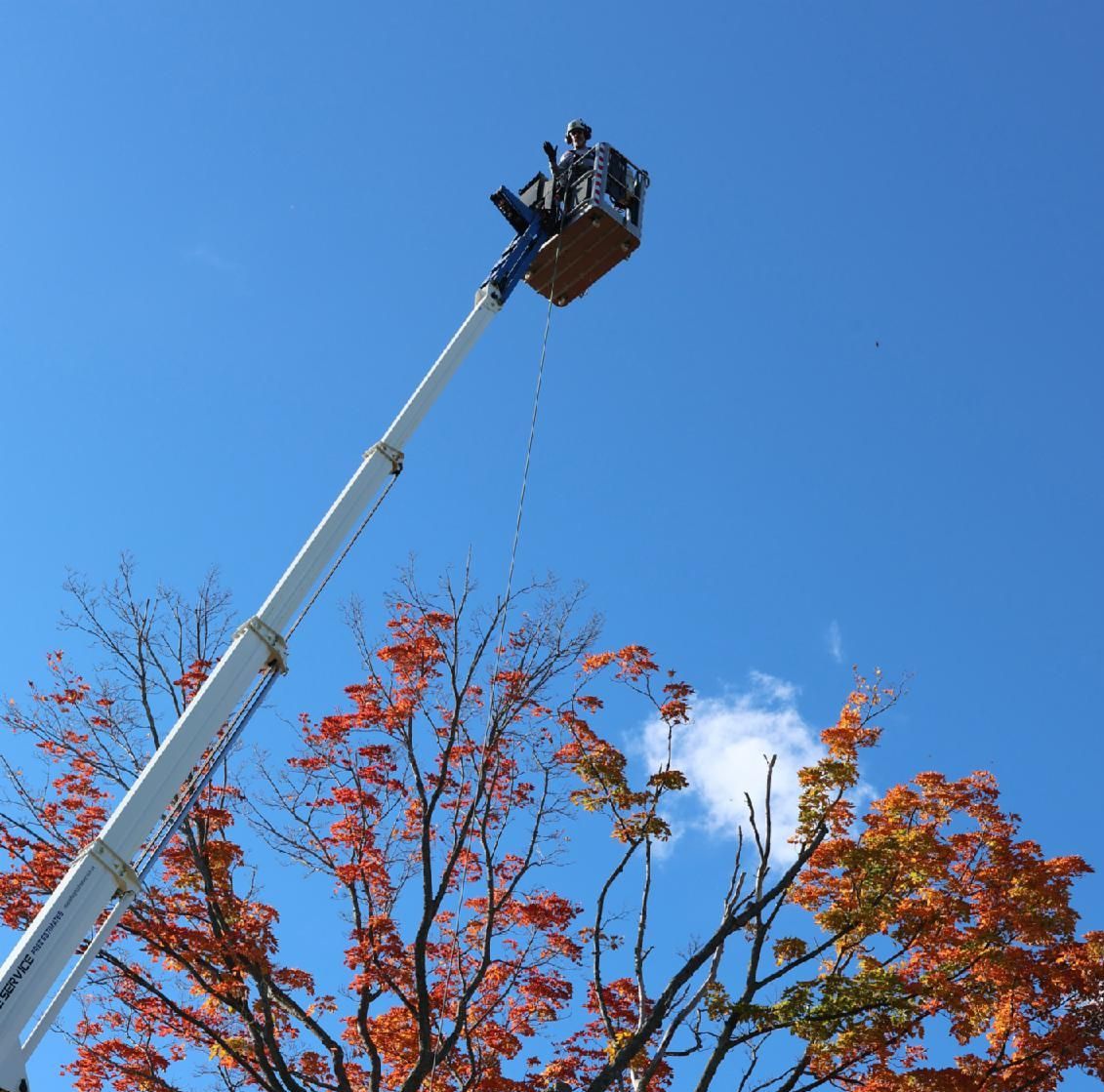 Doug ensures that his team is thoroughly educated in all aspects of skill development, equipment use and safety, which is paramount when climbing and cutting trees. The recently acquired spider-like BlueLift machine has a reach of 85 feet and can move through 38" openings; it's very nimble, and is the only one of its kind in the region. "It's an investment in better serving customers and making processes more efficient and safe," Doug says.