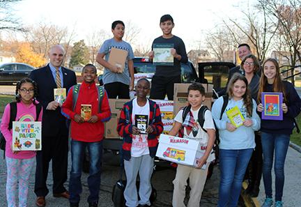 AHHS Principal Dr. Marc Baiocco with students who participated in the successful book drive. |