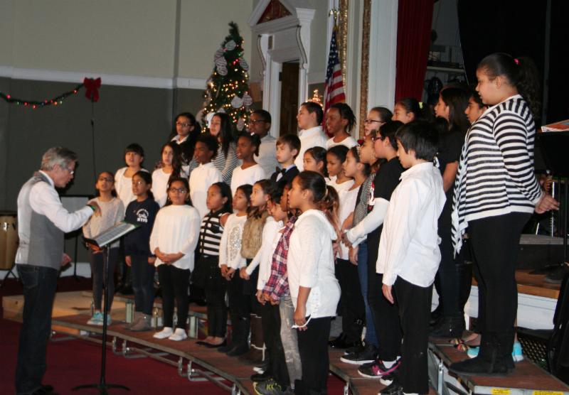 The groups performing at the Grady Holiday Concert and the District Holiday Concert included the Alice E. Grady Elementary School Band, under the direction of Allison Shapiro; the Alice E. Grady Elementary School Chorus, under the direction of Timothy Brown; the Alexander Hamilton High School Chorus, under the direction of Katie Chan Chee and the Alexander Hamilton High School Band, under the direction of Rob Jacoby.