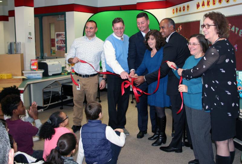 A section of the Alice E. Grady Elementary School's library has been transformed into an exciting Makerspace and innovation lab area, which officials from the Elmsford Union Free School District celebrated Dec. 14 with a special ribbon cutting ceremony.
