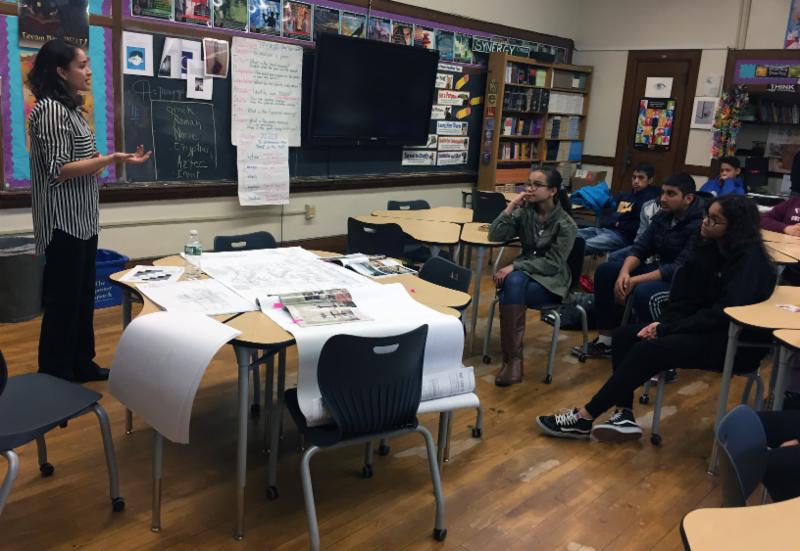 | Meagan Rivera, an AHHS alum and now an architect, speaks to students during Career Day. |