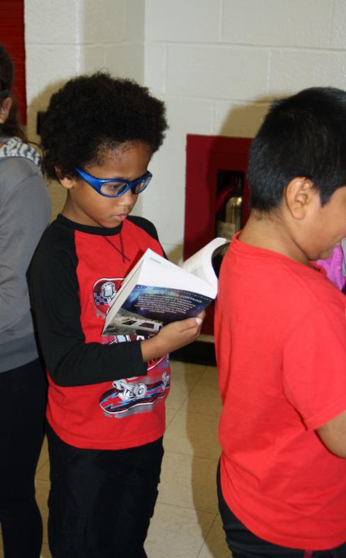 One curious third-grader examines his newly acquired dictionary.