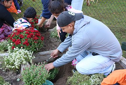 During the event, fathers and mothers helped their little ones plant a variety of mums of different colors in the school's garden, which is located near the recently renovated playground.