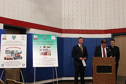 The Elmsford Board of Education, combined with village trustees and Our Lady of Mount Carmel School, renewed a joint commitment to anti-bullying Oct. 5 during a special board meeting held in the district's Alice E. Grady Elementary School gym.