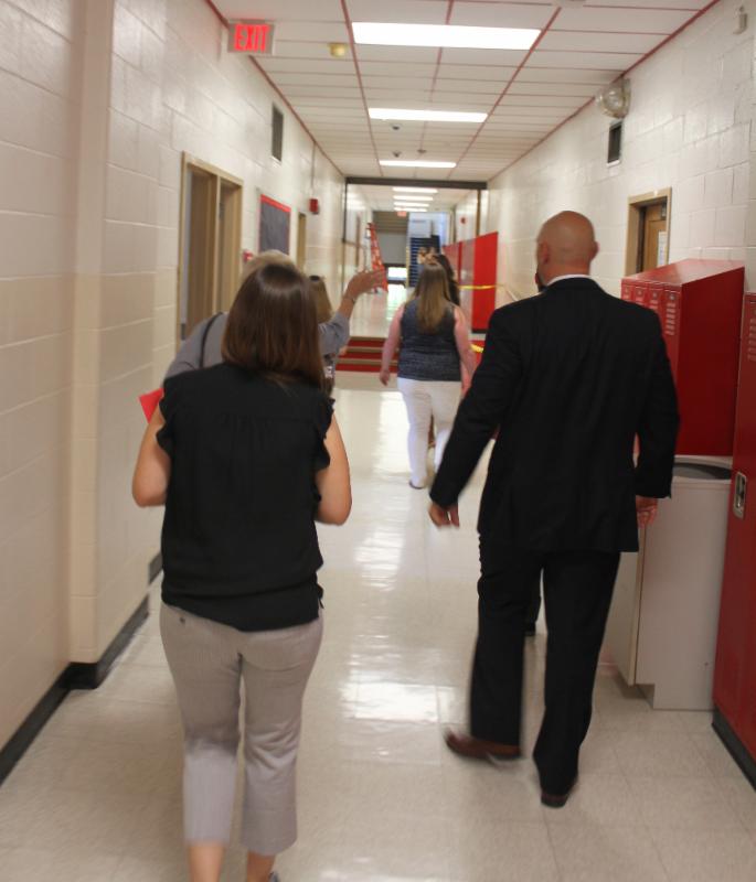 AHHS Principal Marc Baiocco gives new staff a tour of the building.