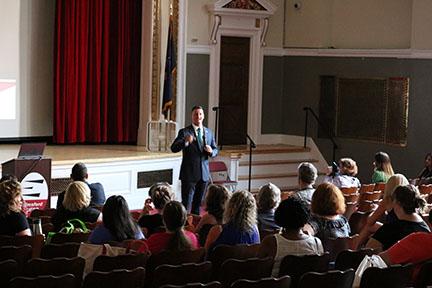 Superintendent Dr. Joseph Ricca talks to teachers and staff during the Aug. 31 Superintendent's