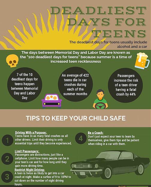 4) Safe driving reminder ahead of the July 4th holiday as the 100 deadliest days for teen drivers, Memorial Day to Labor Day, are well underway: