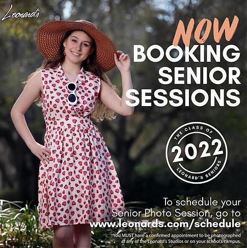 Class of 2022, it’s time for your senior pictures! The Leonard’s studio is now open! Please check your email for an access code and instructions on how to book your appointment. If you do not receive an email, you can search for the student's access code by going to www.leonards.com/scheduling and following the steps. You will need the name and student number; Or by calling their customer service at 888-224-5045, so that they may assist you. Due to COVID-19, you must have an appointment. Ladies, please be sure to bring a spaghetti strap shirt that you can pull off of your shoulders; Gentlemen, a light colored t-shirt.