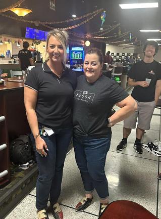 Edgewater’s Bookkeeper, Ashley Johnson (above left with Dr. Kreider), and Advanced Studies Coordinator, Alexa Corbo, received prizes for bowling the top highest scores of the afternoon. | |