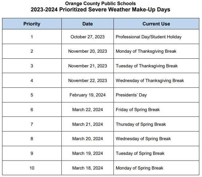 Severe Weather Make-Up Day Schedule (if needed): | |