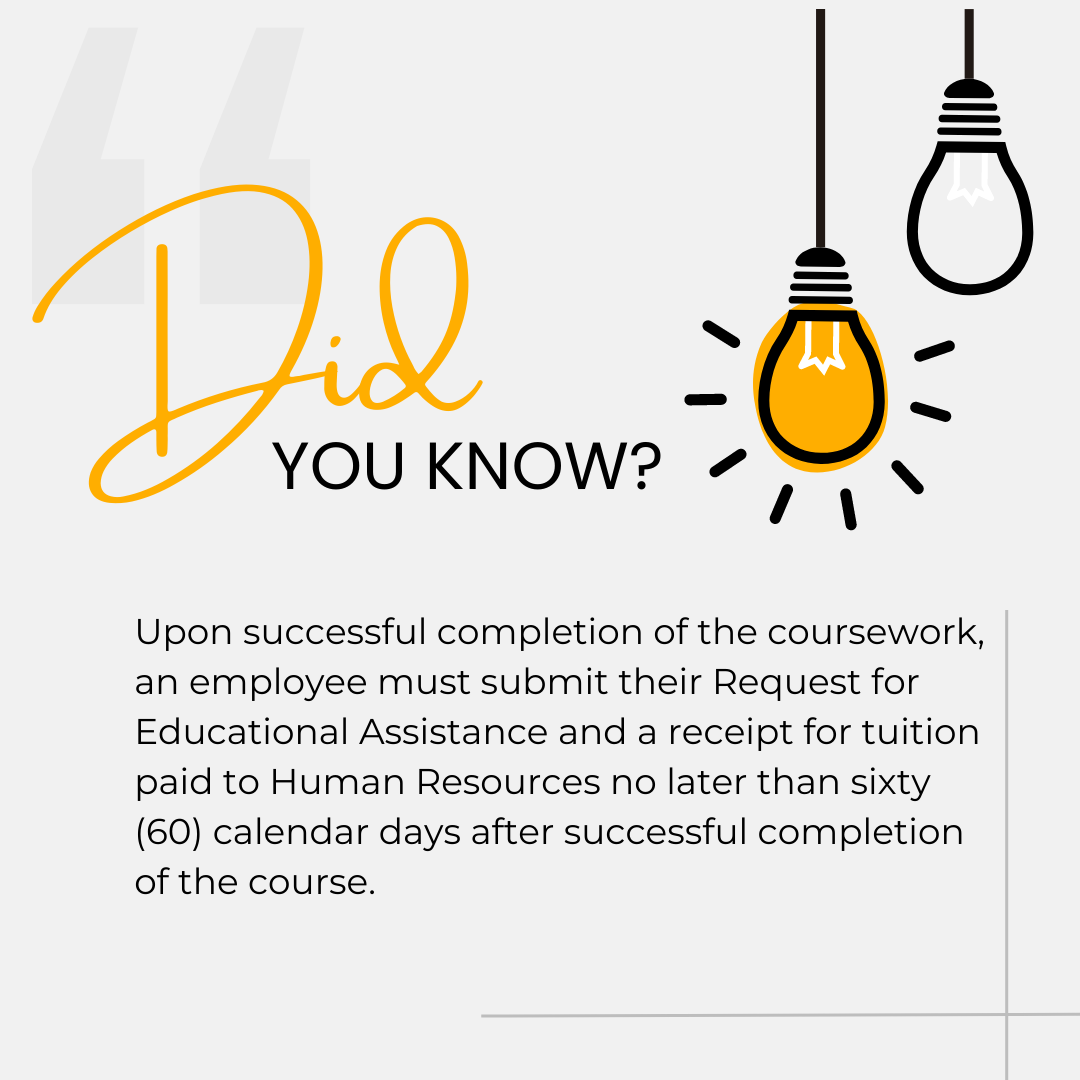 Degree-seeking coursework contributing to the completion of a degree of higher education that will enhance an employee’s job performance and future potential will be reimbursed. Eligible non-bargaining employees who are active on payroll can apply for reimbursement after completion of the six-month initial hire probationary period, and successful completion of coursework. Full-time employees are eligible for $2,500 and part-time employees are eligible for $1,250 per fiscal year. To apply, click here. Employees covered under a collective bargaining agreement are eligible for educational assistance as outlined in their respective bargaining agreement.