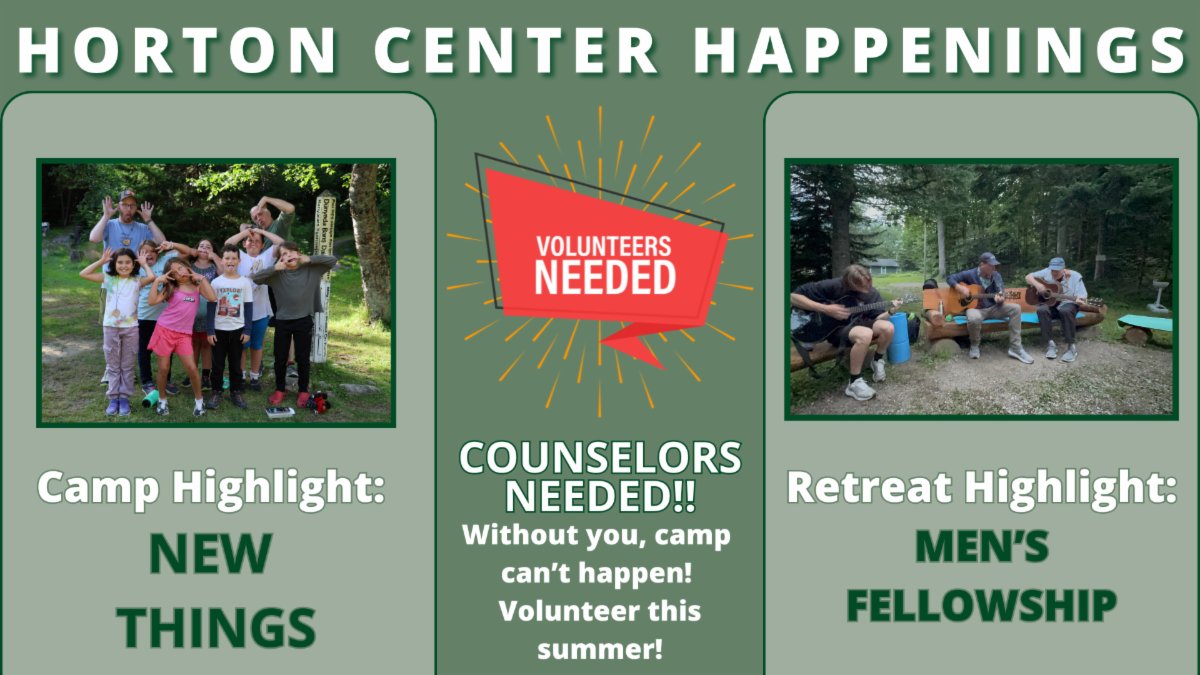 Join us for a time of fellowship, relaxation, spiritual reflection, creativity, and adventure at Horton Center. Whether you can join us for one day, or the whole retreat, you are welcome to come up to the mountain and enjoy the beauty of the space and the opportunities the surrounding area offers (canoeing, hiking, etc.) as well as cool opportunities on site (perhaps fly tying, making rustic furniture, painting, and more!).