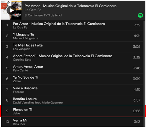 Juan Sebastián López, conocido artísticamente como Jeloz, es nuevamente elegido para formar parte de una banda sonora en Chile, esta vez Televisión Nacional de Chile (TVN), se interesó en el joven músico colombiano de la música urbana y reggaetón, y lo incluyó en la banda sonora de su producción del área dramática "El Camionero", novela que por estos días marca la más alta sintonía dentro de su segmento y horario en la televisión chilena. "Pienso en ti" - del disco Ilusión - es el single elegido para musicalizar las escenas de la joven pareja conformada por Alejandra Sanhueza (Belén Soto) y Sebastián Cienfuegos (Matías Asler).