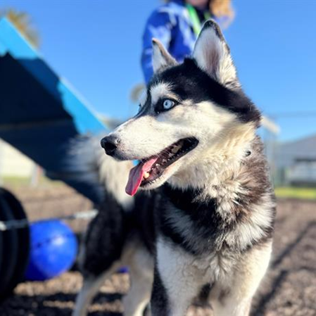 Me llamo Lobo. Soy un husky siberiano macho de 3 años que llegó al refugio en febrero. ¿Me acogerás en tu familia?