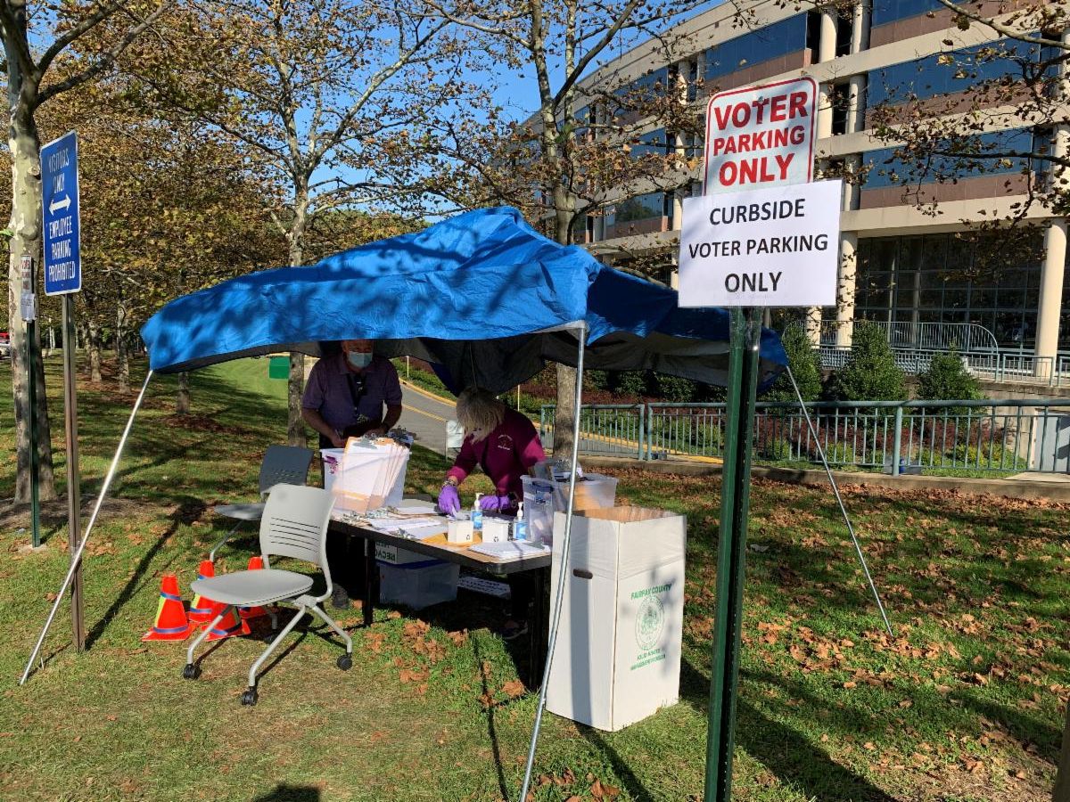 It is important to note that curbside voting does not put you at the front of the line. If you are voting at the Fairfax County Government Center, there is now a tent outside of the curbside voting area and election officers will take you in the order of the request. It can take some time to process each voter, so if you decide to vote at the Government Center, be prepared to wait.