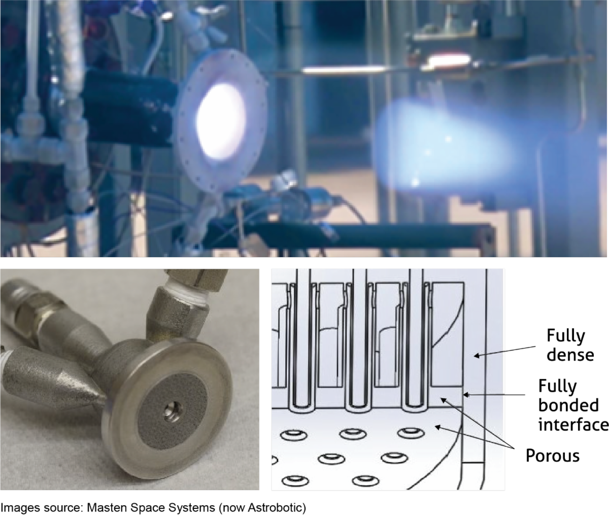 The technology was initially matured by Elementum 3D and Masten Space Systems (now Astrobotic) with support from a NASA SBIR program. The ability to integrate regions with controlled permeability with solid material in printed parts can improve performance and reliability while simplifying manufacturing for reducing cost and time.