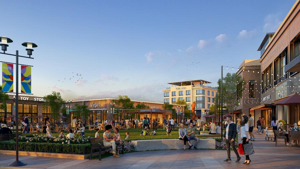 | | The development will initially feature a four-story upscale hotel, 100,000 square feet-plus of elevated retail, dining, and entertainment, and an additional 10,000 square feet of flexible second-floor space that could accommodate retail, office, or residential uses. Long-term goals include a residential component that could include urban lofts or apartments. At the heart of the project will be a half-acre “village lawn” serving as a central public gathering space, and a curated streetscape experience coupled with modern elevated architecture. To further activate the district, the project will include year-round programming and special events to foster vibrancy and create a true sense of place. | | |