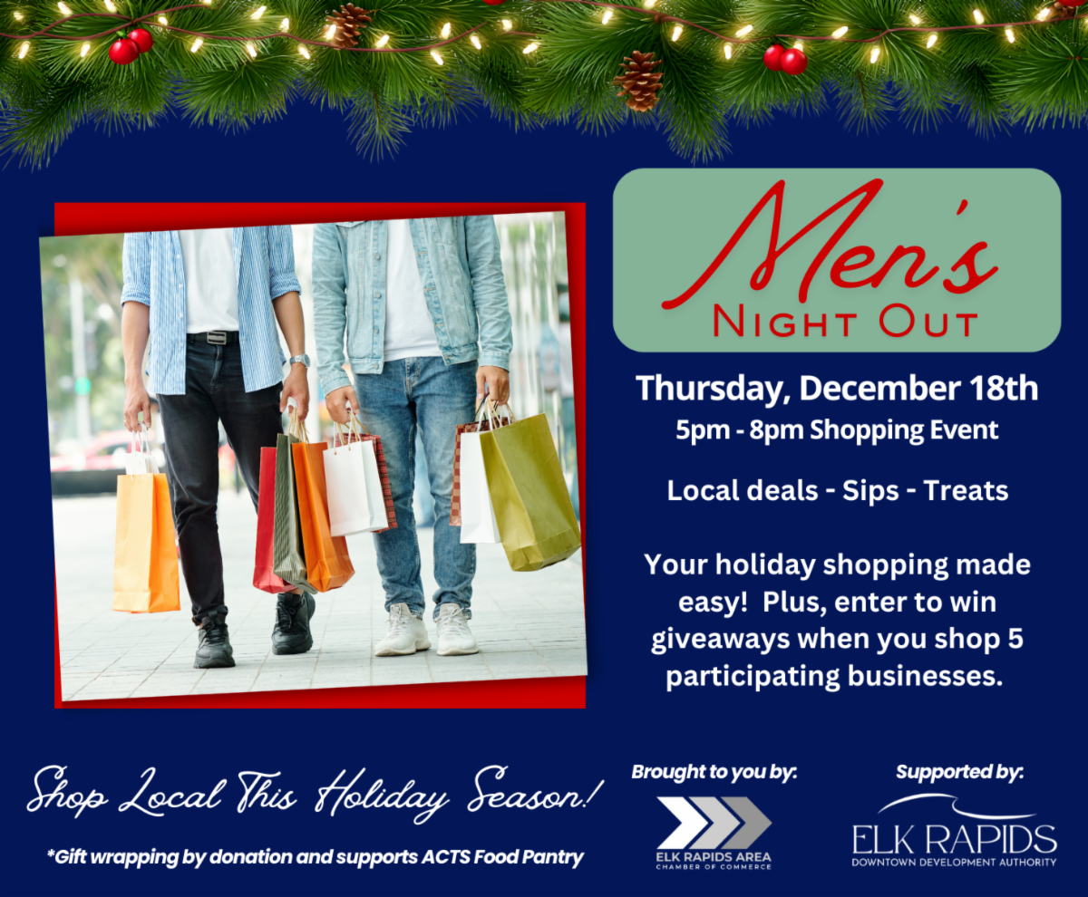 The Acme Christian Thrift Shop & Food Pantry is excited to join the fun in downtown Elk Rapids during Men's Night! Stop by Harbor Wear on Thursday, December 18th, from 5:00 pm to 8:00 pm, and let us take one holiday task off your list.