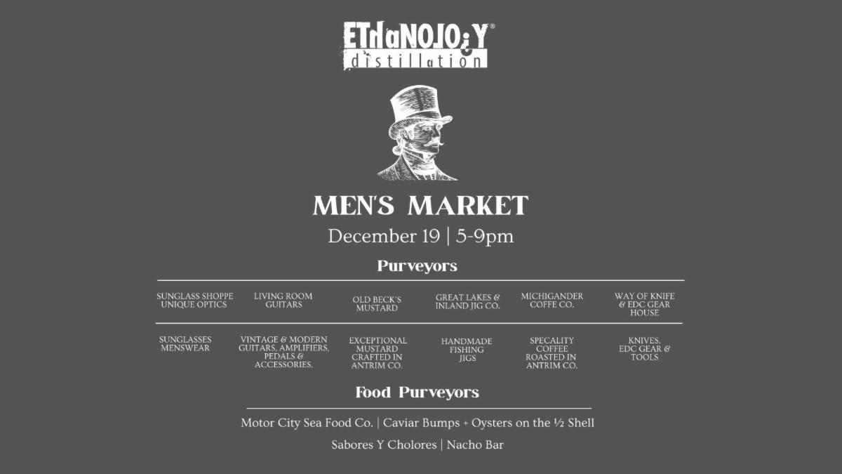 Gentlemen, and those shopping for gentlemen (ladies), we have an evening for you! We have lined up purveyors of fine men's goods, and incredible food vendors for a unique evening at the distillery.