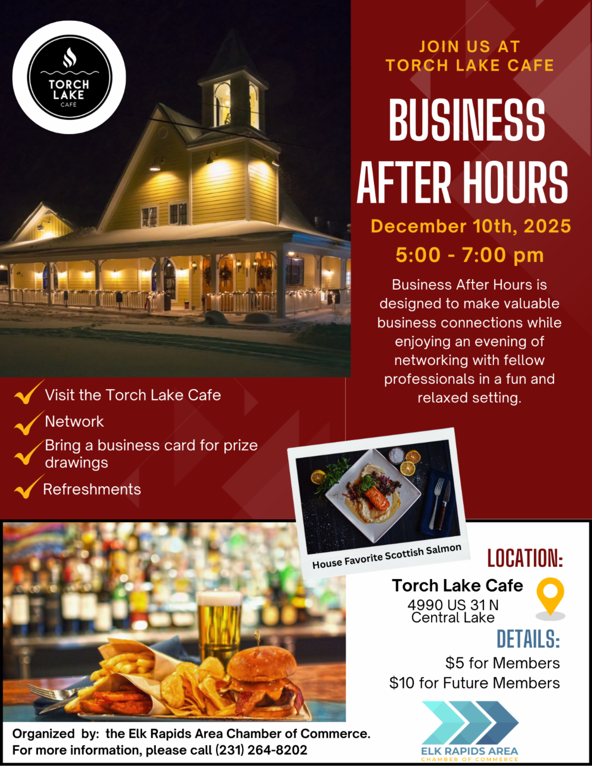 December 10, Business After Hours At Torch Lake Cafe, 5-7 pm