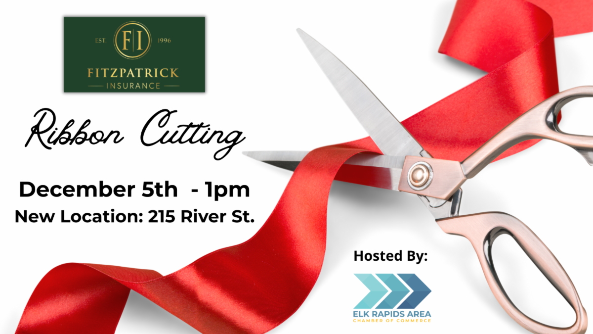 | | To ensure your events are included in the Monday Minute, please email christina@elkrapidschamber.org by Friday. Reaching over 2.7K subscribers with an open rate of over 60%. | | Join us for a ribbon-cutting to celebrate the new location of Fitzpatrick Insurance at 215 River Street, Suite #1 in Elk Rapids. | | |