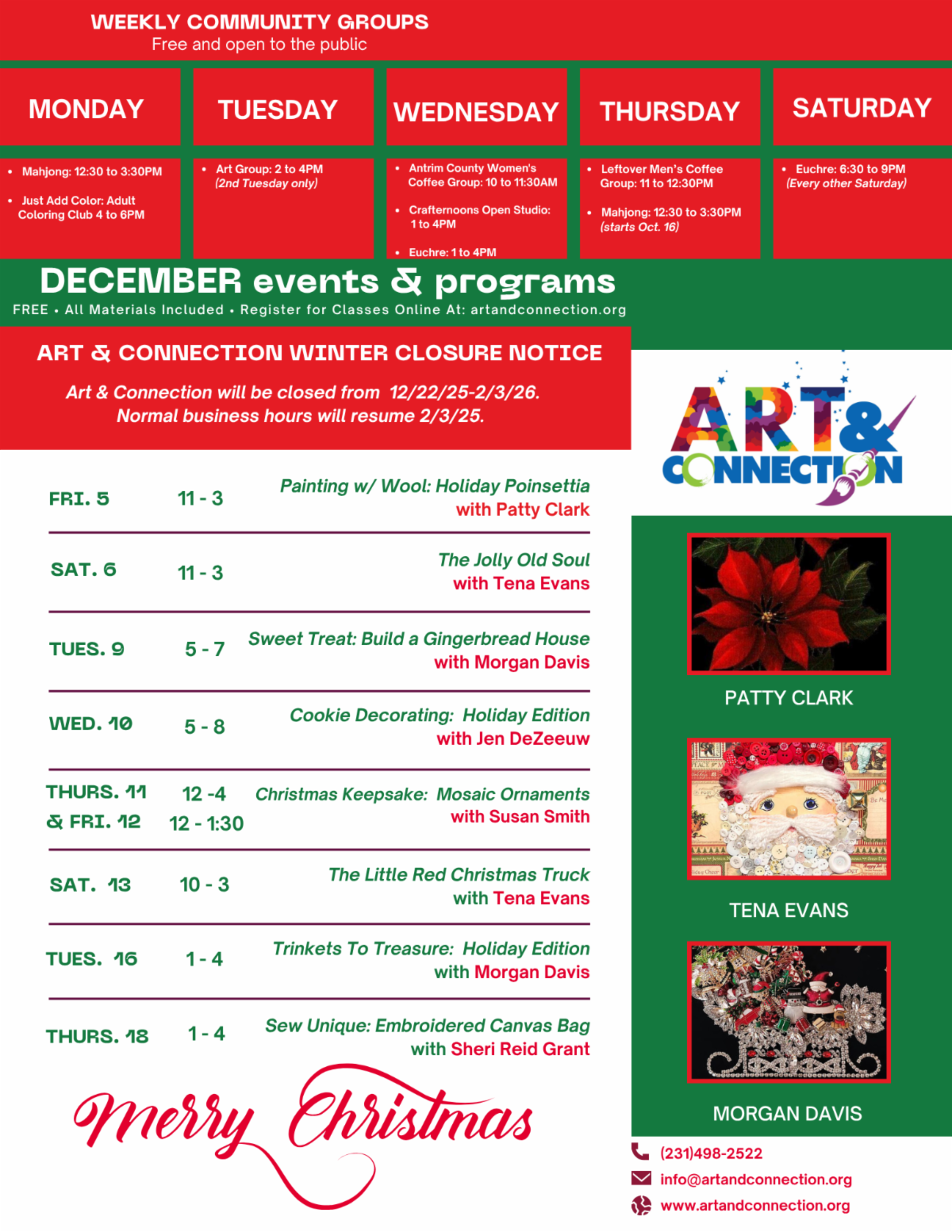 Please call to register as classes tend to fill up quickly. 231-599-2824