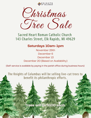 December 13, Christmas Tree Sale at Sacred Heart, 10am - 1pm