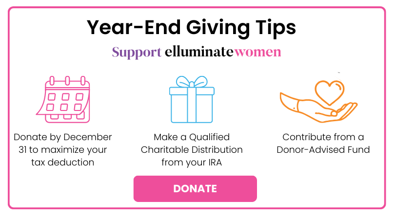 If you have questions about how your generosity to Elluminate can make a difference this December, please contact Pamela S. Goldstein, Chief Development Officer, at pamela@elluminatewomen.org.