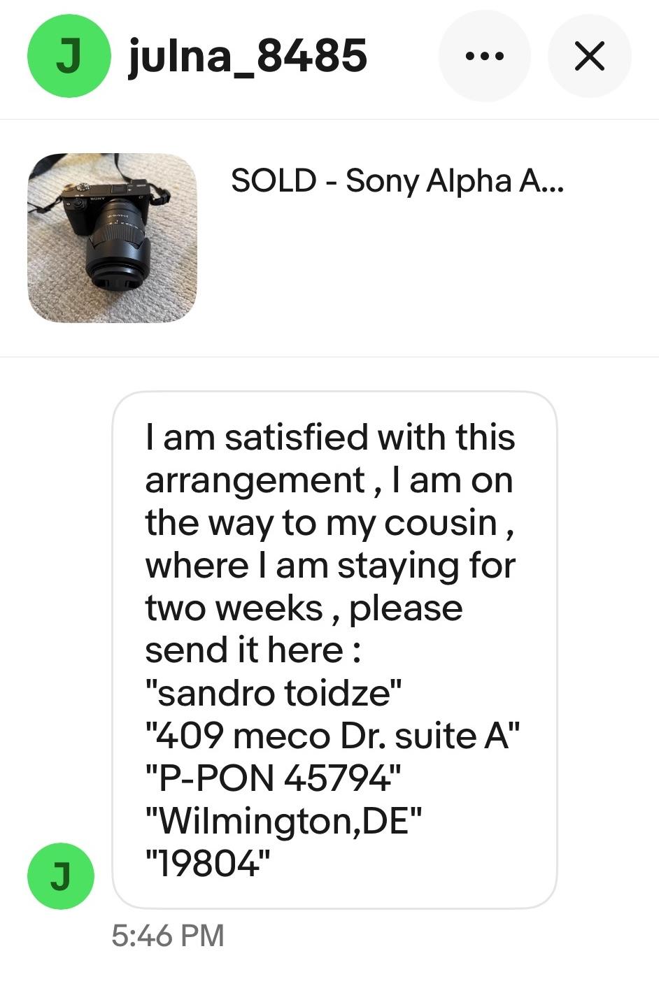 📖 Moral of the story: Only ship to the winning bidder’s registered address. And require a signature confirmation if it’s an expensive (>$100) item.