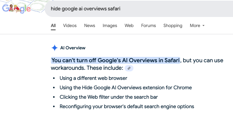 Solution: A Chrome extension called "Hide Google AI Overviews."