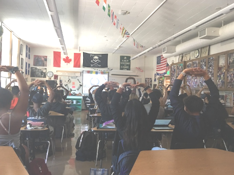 Psychology students at San Leandro High School are seen here starting their day with chair yoga and mindfulness work. What a way to start the day!