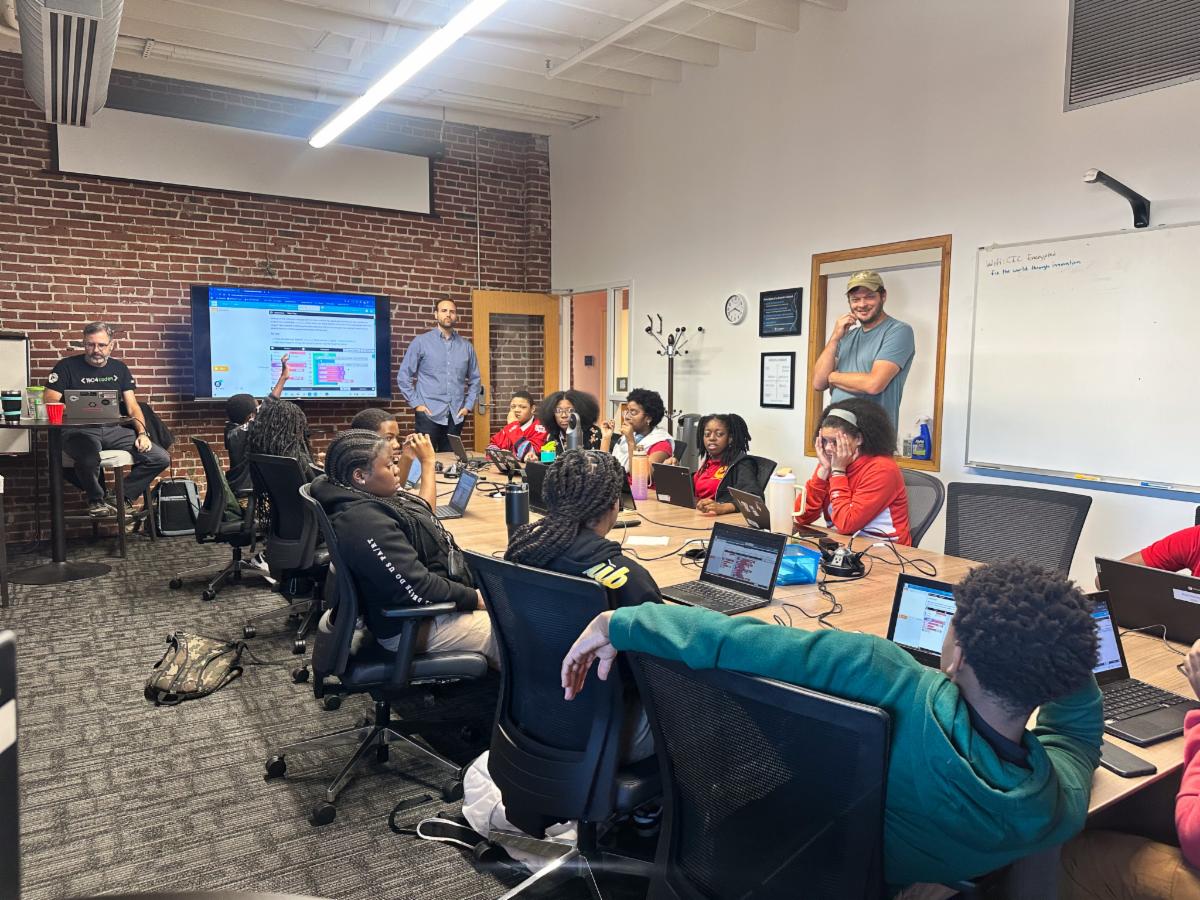 Led by LFLA Board Member Beau Herndon, LFLA teacher Alex Edge, and other volunteer tech professionals, students are learning the basics of coding through the interactive platform Code.org. In recent sessions, they’ve been experimenting with the building blocks of game and app development to learn how to make digital objects move, collide, and respond to commands. The program, originally launched in 2018 by Beau Herndon and Kit Menke with support from 1904labs founders Sean Walsh and Jack Bader, has continued under Turnberry Solutions’ leadership and remains focused on engaging middle school students in hands-on computer science learning.