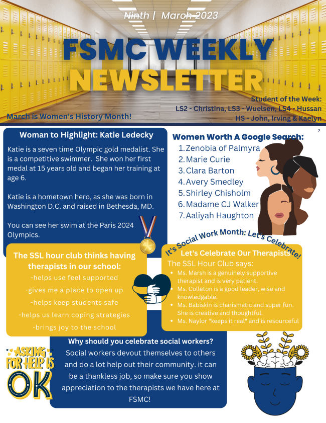 Our service learning club practiced teamwork and showed amazing kindness to their local and school community through several community service projects this year. To make certain classroom topics easier to understand, students designed informational bulletin boards about World War I and math subjects like Circles and Pi for their peers to admire in our hallways. Students also continued to give updates about school events and celebrations through our weekly school newsletter, including shout outs to our staff and important information about Autism Awareness Month in April.