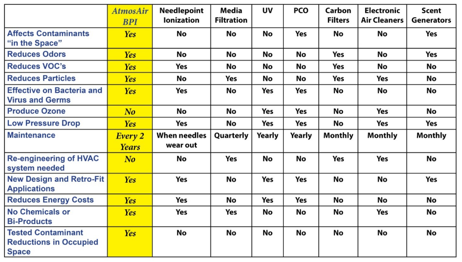They all have their strengths and their weaknesses, but most importantly, NONE of them are capable of dealing with most/all the typical IAQ problems like AtmosAir™’s BPI process.