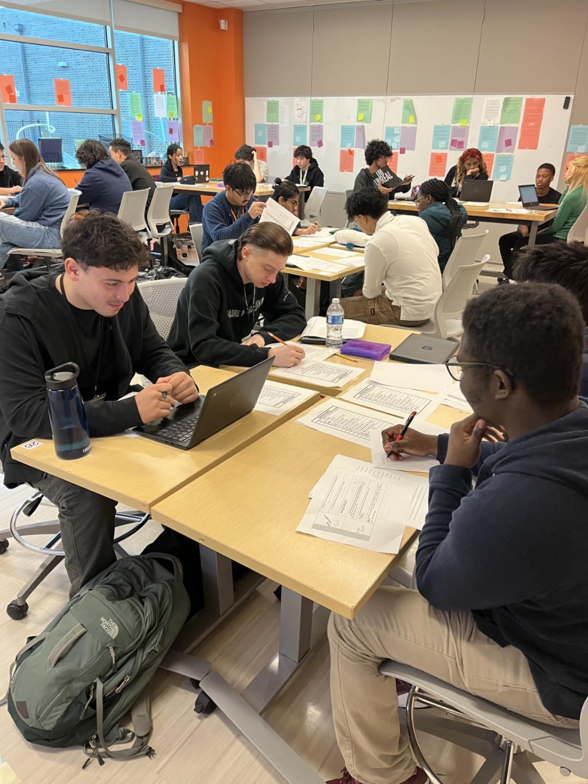 In Cohort 5, students have written the first draft of their college essays. This week, students did a gallery walk of the essay to gather inspiration from their peers and see if they could identify who wrote which essay. They then participated in a peer edit and will revise their essays this week.