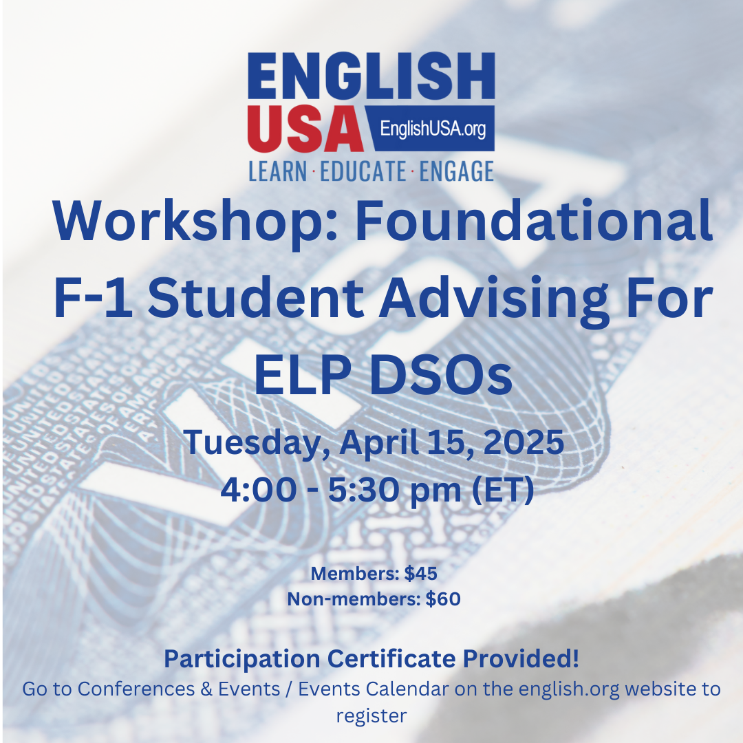 - April 15, 2025 @ 4:00pm ET (ELP DSOs-focused on F-1 Student Advising)
