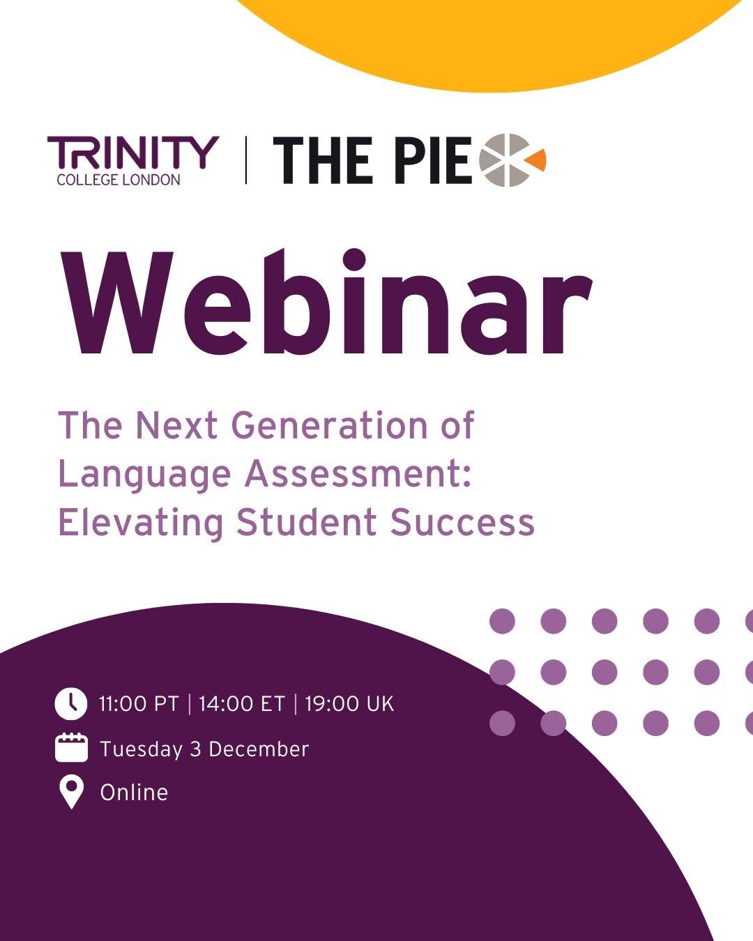 Trinity College London will be co-hosting a webinar with The PIE on December 3rd, to speak about student success in the US university landscape. The event will feature guest panellists Dr. Jaishankar Raman, Executive Director of International Affairs at California State University, Office of the Chancellor, and Jeff Hutcheson, Director of Advocacy & Public Policy for TESOL International Association. The panel will discuss the importance of international admissions, alongside our four-skill examination Integrated Skills in English (ISE). | |