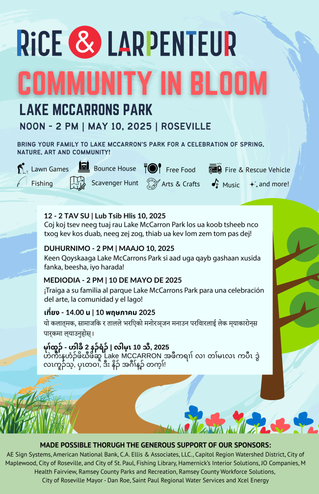 Join us at Lake McCarrons Park for RLA's Community In Bloom event. Happening this Saturday on May 10th from Noon to 2 PM. All are welcome to celebrate and admission is FREE.