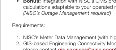 | Leverage your AMI system, GIS system, SCADA system and NISC's MDM on one platform. | View as Webpage |