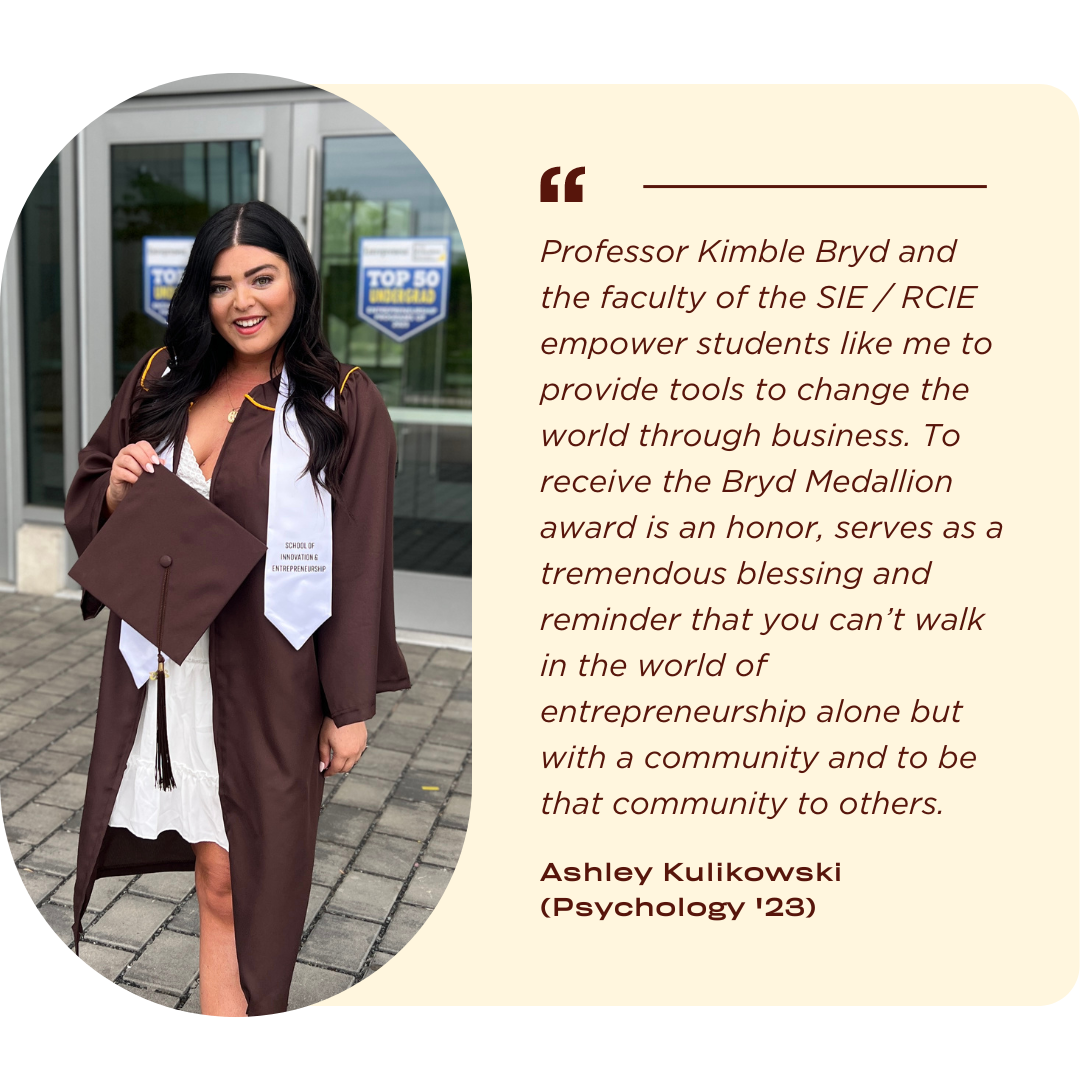 The 2023 Byrd Medallion Award for Entrepreneurial Leadership recipients are Nicholas Nastasi (Management / Entrepreneurship '23) and Ashley Kulikowski (Psychology '23).